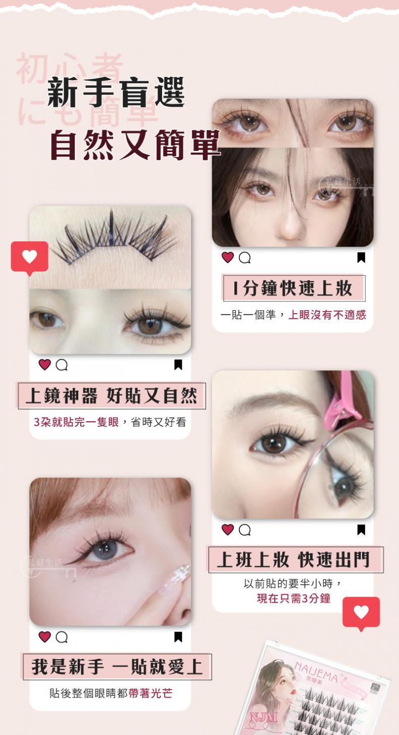 20分鐘前【限時買一送一】日本爆款吸睛NJM懶人睫毛,一秒粘貼 輕盈超細梗 自然不做作~轉為亞洲人眼型設計,上班 / 上學 / 約會 快速上妝秒出門 - 【超值組合 買二送二】NJM懶人假睫毛四入組(一秒粘貼 輕盈超細梗 自然不做作)-NT$ 990