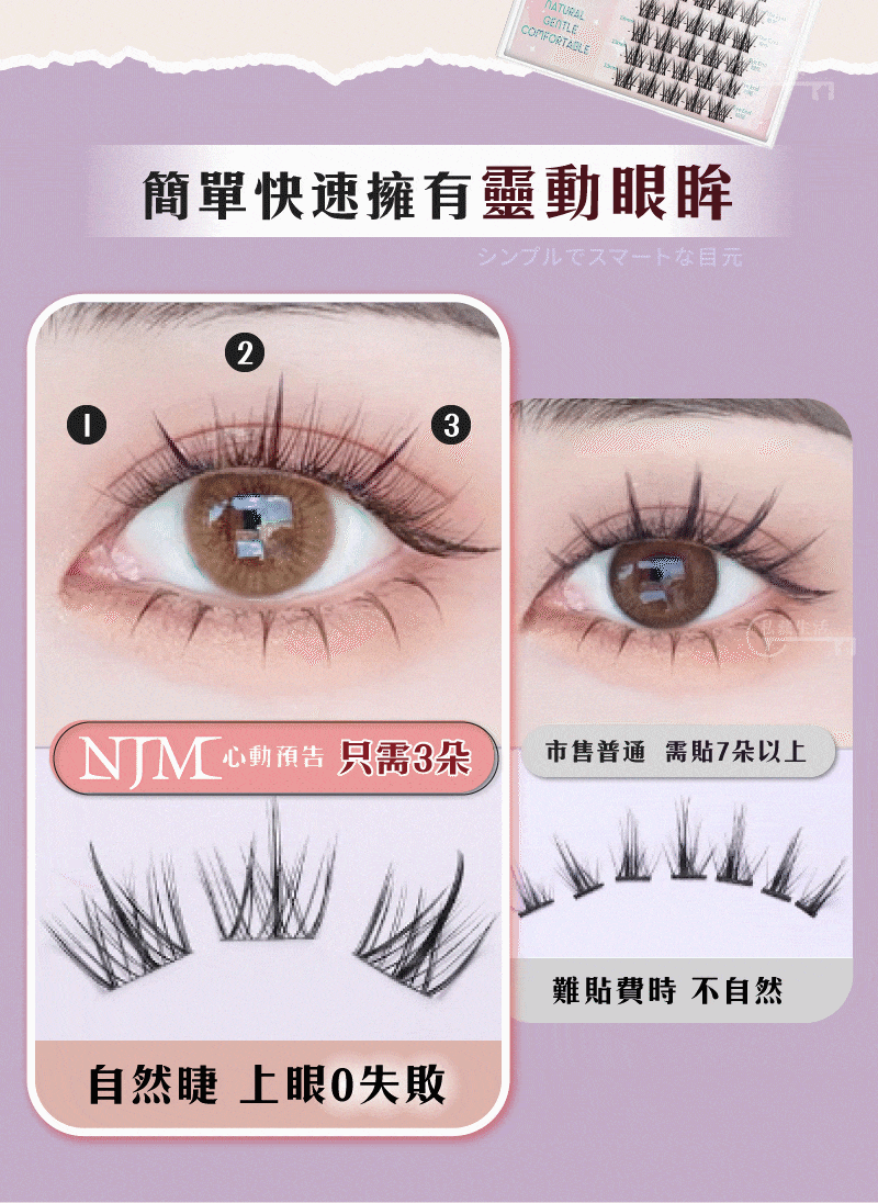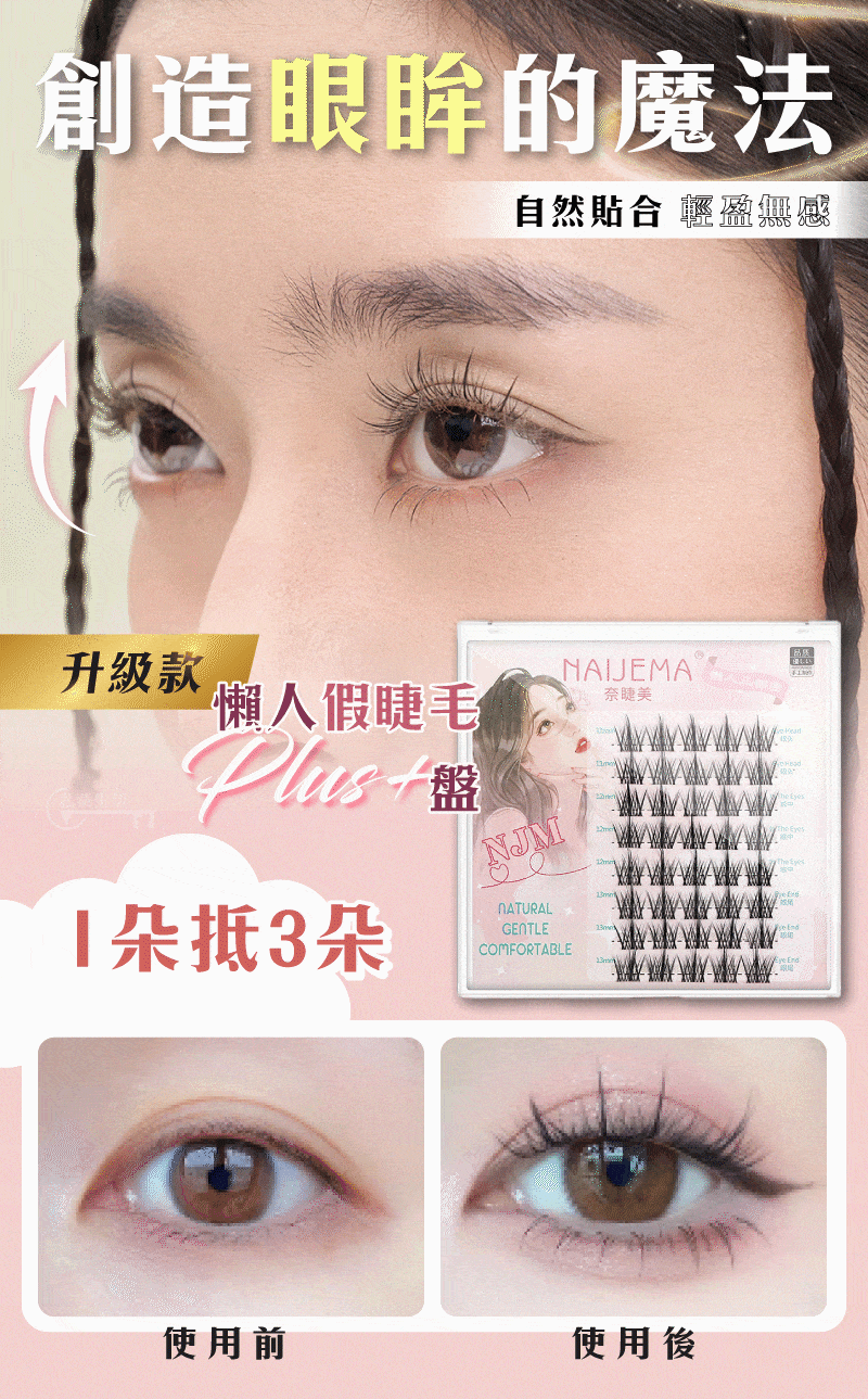 2分鐘前【限時買一送一】日本爆款吸睛NJM懶人睫毛,一秒粘貼 輕盈超細梗 自然不做作~轉為亞洲人眼型設計,上班 / 上學 / 約會 快速上妝秒出門 - 【99%的人選擇 買三送三】NJM懶人假睫毛六入組(一秒粘貼 輕盈超細梗 自然不做作)-NT$ 1380
