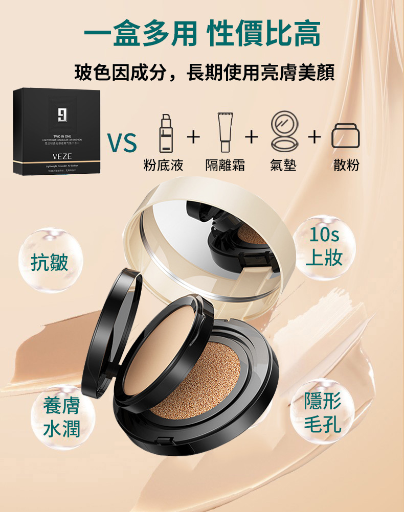 15分鐘前【韓國进口成分添加超养肤!!!】 一层气垫BB霜,一层定妆粉饼 ,防晒美肌气垫霜,修复脸部遮瑕 ,底妆 ,遮瑕 ,定妆一盒搞定所有妆容! - 限殺搶購-買三送三 NT$1598