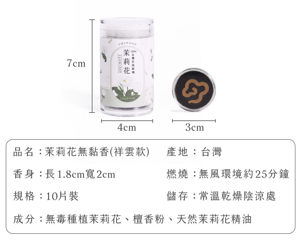 4分鐘前原木香 茉莉花無黏香 10g/ 20g 無粘香 祥雲香 食用級 無毒 花壇茉莉花 窨茶 薰香 擴香 開運 招財 濃縮10倍香氣 臥香 線香 無黏粉 獨家技術 - 茉莉花無黏香 祥雲款(10片裝)7罐